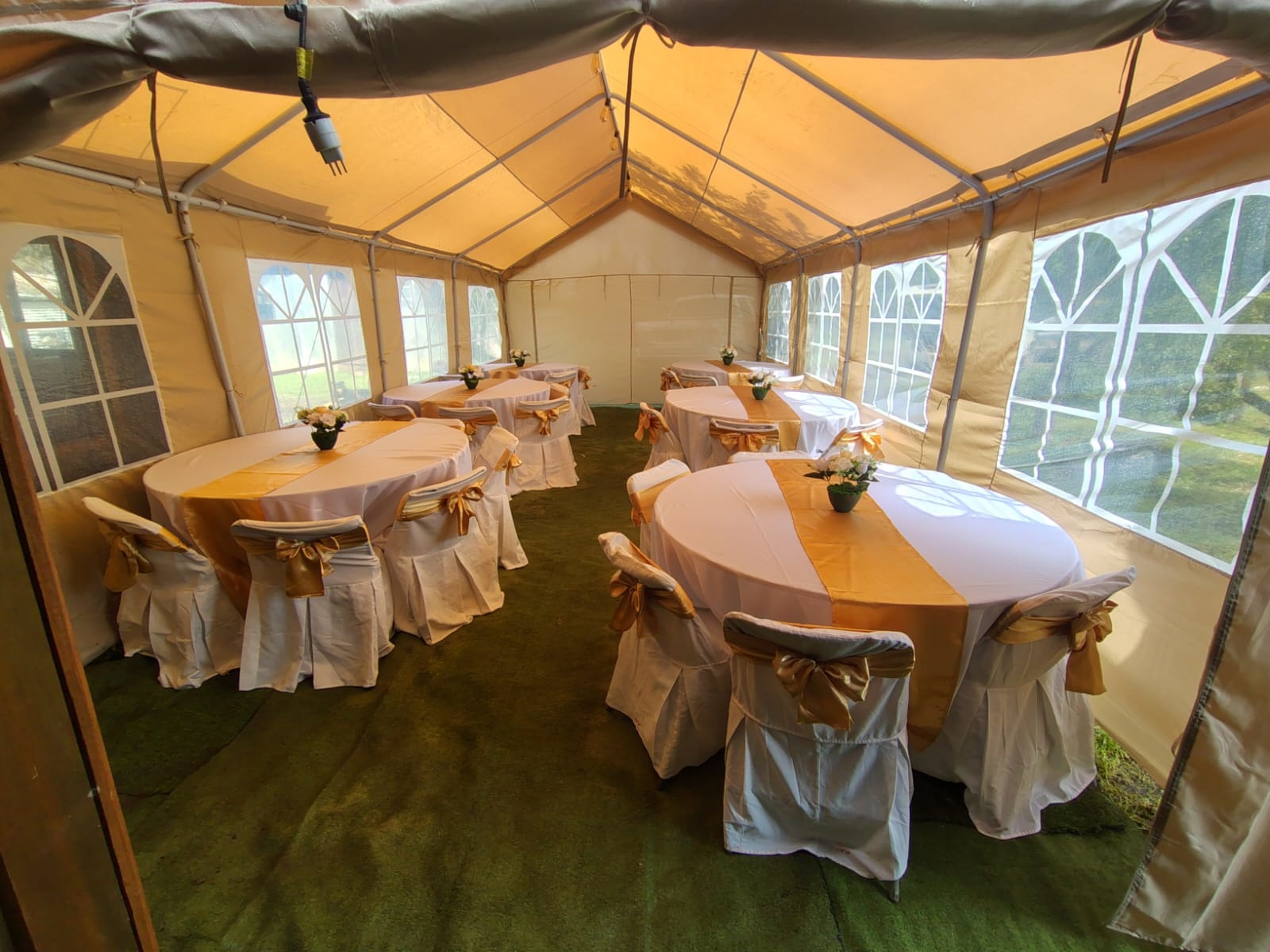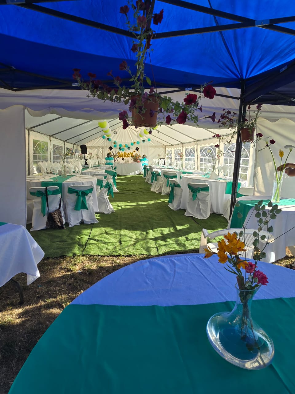 "Ofrecemos servicio de arriendo de carpas, mesas, sillas, banquetería, vajilla, utensilios de cocina y bar, ideales para todo tipo de eventos. Nos adaptamos a tus necesidades y al espacio disponible, asegurando comodidad, calidad y una excelente experiencia para tus invitados."